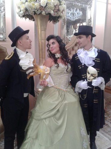 De los caballeros tenemos trajes blancos, negros, plateados, dorado, azul